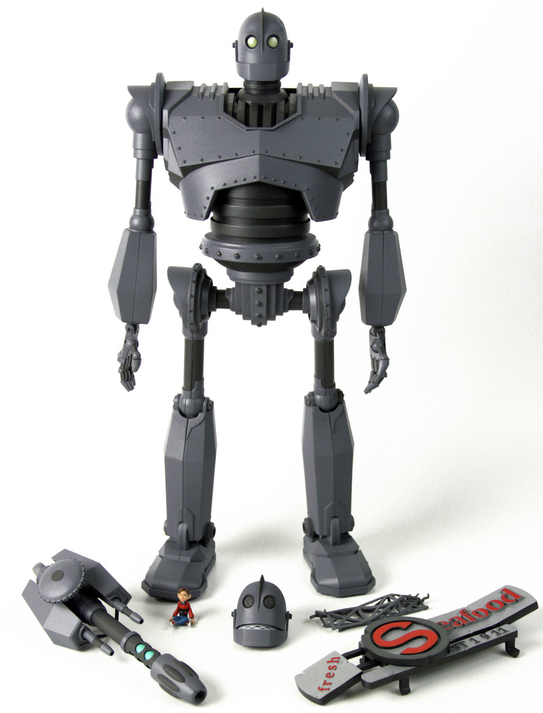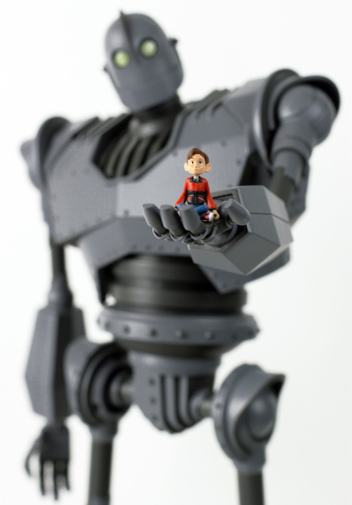 A Mondo colocou em pré-venda a partir de hoje um briquedo de luxo do robô protagonista de O Gigante de Ferro. Uma das animações mais legais que o cinema norte-americano já produziu, o filme virou cult com o passar dos anos, foi tema de cartazes expostos e vendidos pela própria Mondo e agora ganhou esse brinquedo sensacional. O bonequinho tem 40 centímetros, mais de 30 pontos articulados, emite alguns sons e vem acompanhado de algumas peças extras – incluindo uma miniatura do Hogarth, o menino amigo do robô. Coisa fina demais. Ruim é o preço, sem contar o envio, sai por US$300. Mas mais legal que o brinquedo, é a foto do Brad Bird, diretor do filme, embasbacado com o seu exemplar do brinquedo em mãos, olha mais abaixo no post. Lá no site da Mondo tem outras imagens. Dá pra comprar aqui.
