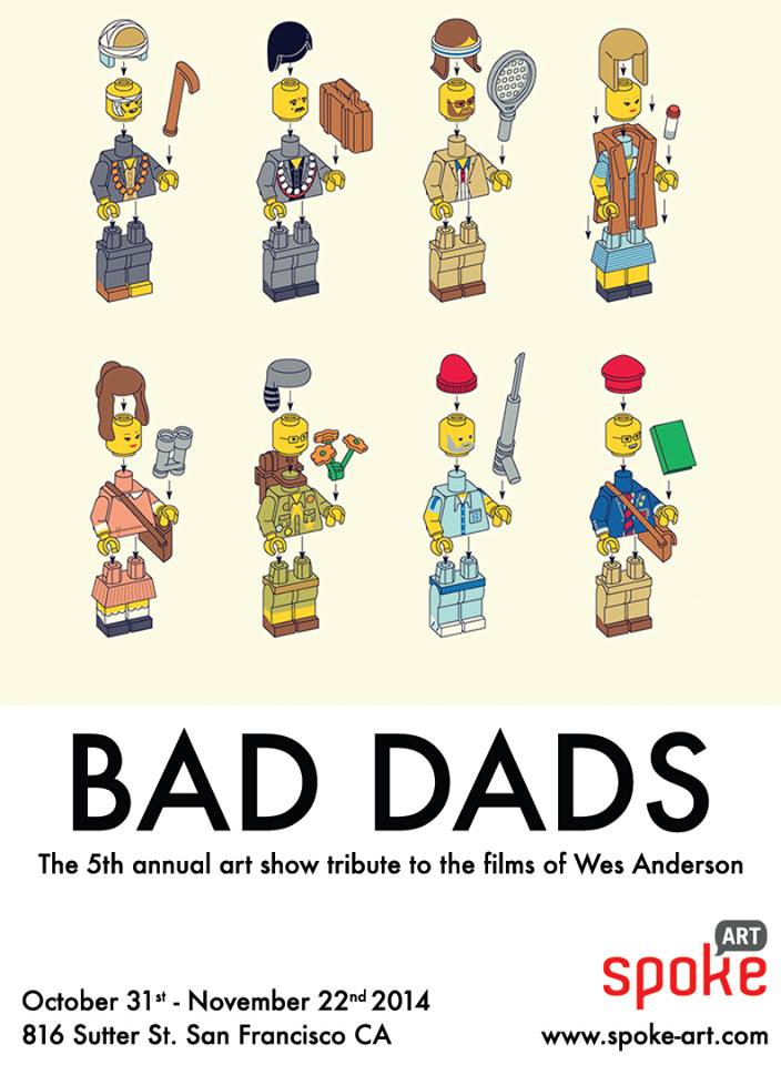 Pelo quinto ano seguido a galeria Spoke Art de São Francisco organiza a exposição Bad Dads, com uma série de obras homenageando um dos grandes cineastas de nossos tempos. A cinematografia de Wes Anderson será revista por mais de 80 artistas, entre pintores e escultores. O evento abre amanhã (29/10) e fica em cartaz até o dia 22 de novembro. A lista completa dos asrtistas participantes está no site da Spoke Art. Beeeem massa. Saca o cartaz e algumas das peças já divulgadas pelos organizadores: