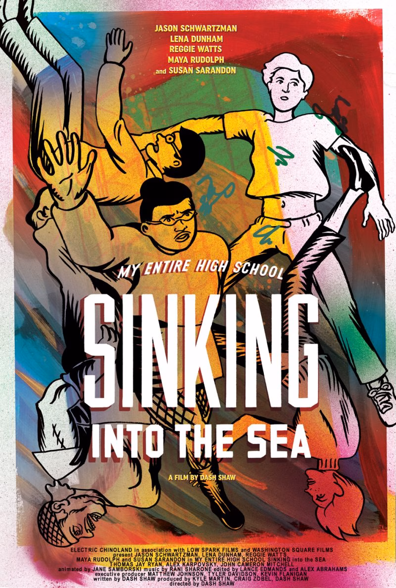 Foram divulgados o pôster e o trailer de My Entire High School Is Sinking Into The Sea, animação escrita, produzida e dirigida pelo quadrinista Dash Shaw – mais conhecido por aqui como autor da excelente Umbigo Sem Fundo. A sinopse da obra diz que o filme é “uma mistura de sátira de blockbuster com comédia adolescente e cinema catástrofe mesclando técnicas de animação, desenho, pinturas e colagens”. O protagonista do filme é dublado pelo Jason Schwartzman e o elenco ainda conta com as vozes de Maya Rudolph, Lena Dunham e Susan Sarandon. O lançamento tá previsto pra abril, mas já tem uma crítica bem massa lá no The Filme Stage. Saca só o trailer: