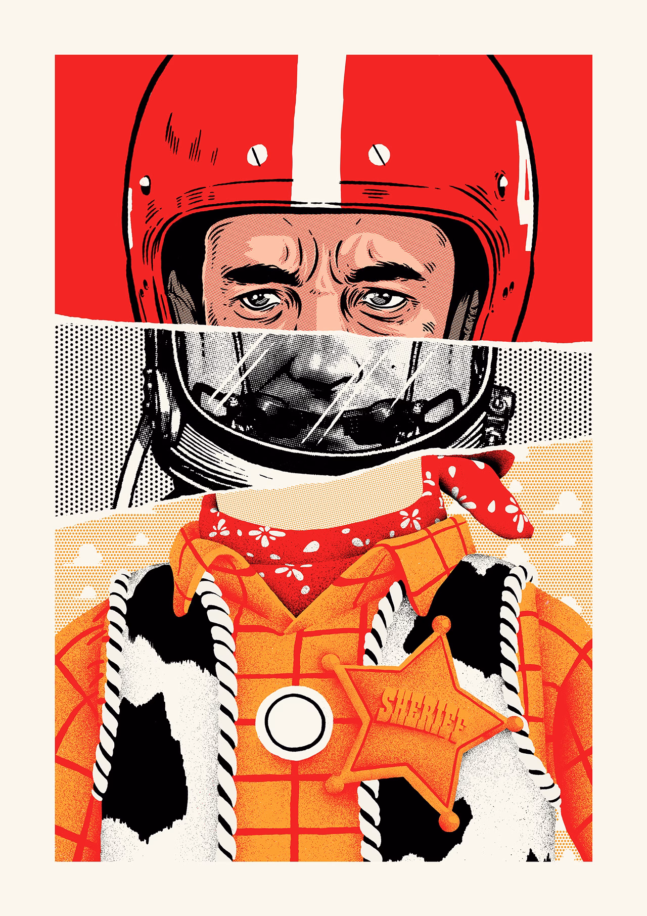 Acompanho há alguns anos o trabalho do Timba Smits. Ele é editor de arte da Huck e da Little White Lies, minha revista preferida de cinema e à qual volta e meia dedico uns posts por aqui. Seja no site, no Twitter ou no Instagram do cara, sempre tem alguma dica massa ou obra legal recomendada. Daí que até o dia 11 de junho ele vai estar com uma exposição em uma galeria australiana de Melbourne, dedicada à sua série mais recente e batizada de Role Models. Ele cria imagens mesclando três dos papéis mais icônicos de grandes astros de Hollywood, no mesmo esquema da capa da Little White Lies #56, especial sobre 1994 que teve o rosto de Jim Carrey como destaque. Achei algumas poucas imagens da mostra na internet, mas bem boas como amostra do que vai estar exposto. Se esbarra com mais alguma, depois atualizo o post. E vale uma lida nessa entrevista aqui que o artista deu pro site da Huck sobre o evento.
