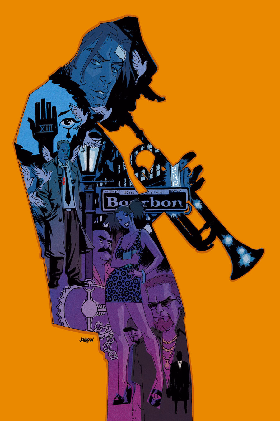 Aí que tem umas séries que volta e meia eu pego uma edição aleatória pra ler ou abro no meio do livro, só pra ver no que dá. Dia desses gastei um tempo no oitavo encadernado brasileiro de 100 Balas, acho que o meu preferido, com uma das hqs mais triste que já li. Lá fora saiu com o nome The Hard Way, por aqui chegou às bancas como Noites de Jazz, sou mais a versão em português hehe Daquelas tramas que não adianta resumir pra quem não conhece o universo criado pela dupla Brian Azzarello e Eduardo Risso. E tenho certeza que você não esqueceu caso já tenha passado por essa edição. Lembra? É protagonizada pelo saxofonista Gabe e ambientada em Nova Orleans. Pois é, cara. Puta gibi. Taí a arte da capa produzida pelo Dave Johnson – e, caramba, como são lindas as capas dele pra 100 Balas.