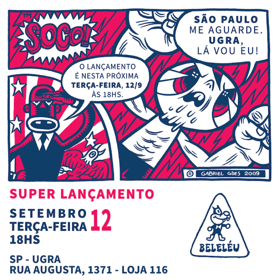 Ei, tem programa pra amanhã a noite em São Paulo? Eu vou dar um pulo lá na Ugra pro lançamento de Soco!™ Vol.1, coletânea das aventuras do personagem do Gabriel Góes publicada pela Beleléu. Além da gibi, a promessa é de alguns outros produtos exclusivos do que os editores do álbum estão chamando de “itens exclusivos da linha de Billy Soco!™”. A página do evento com as instruções de horário e de como chegar na Ugra você encontra aqui. Ó a sinopse divulgada pelo pessoal da Beleléu: