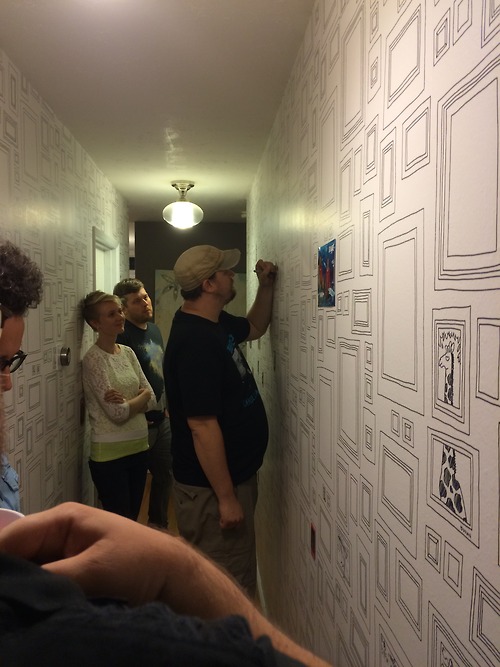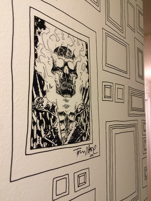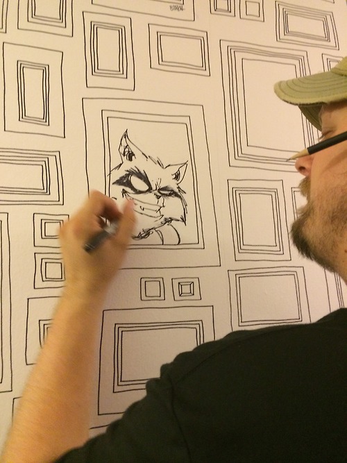 Ei, você, fã de quadrinho em busca de uma decoração diferente pra sua casa. Roteirista de Hawkeye e Sex Criminals e um dos destaques da indústria norte-americana de gibis em 2014, o quadrinista Matt Fraction tem a solução. Ele lotou o corredor de sua casa com quadros em branco e está convidando alguns colegas pra ilustrarem as paredes. Claro, você precisa ter bons amigos desenhistas igual ele pra ter um corredor no mesmo naipe. A brincadeira tá só no começo, mas dá pra imaginar como vai ficar foda quanto estiver um pouco mais cheia. Tirei as fotos lá do tumblr do Bendis e alguns dos desenhistas já nas paredes são Matt Wagner, Skottie Young, Tony Moore e Matthew Clarke.