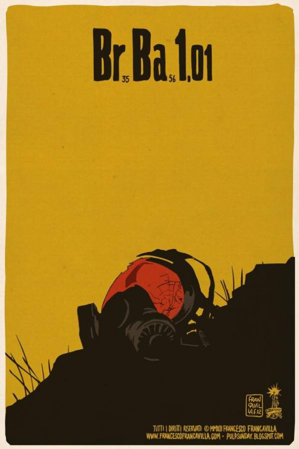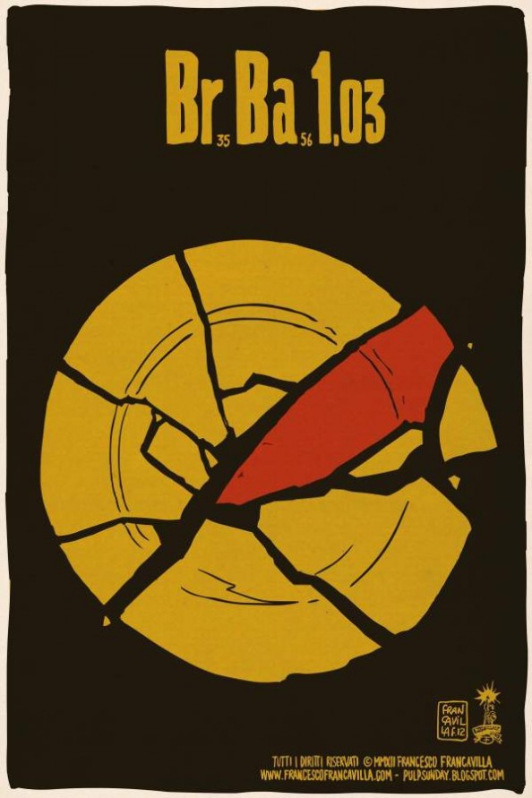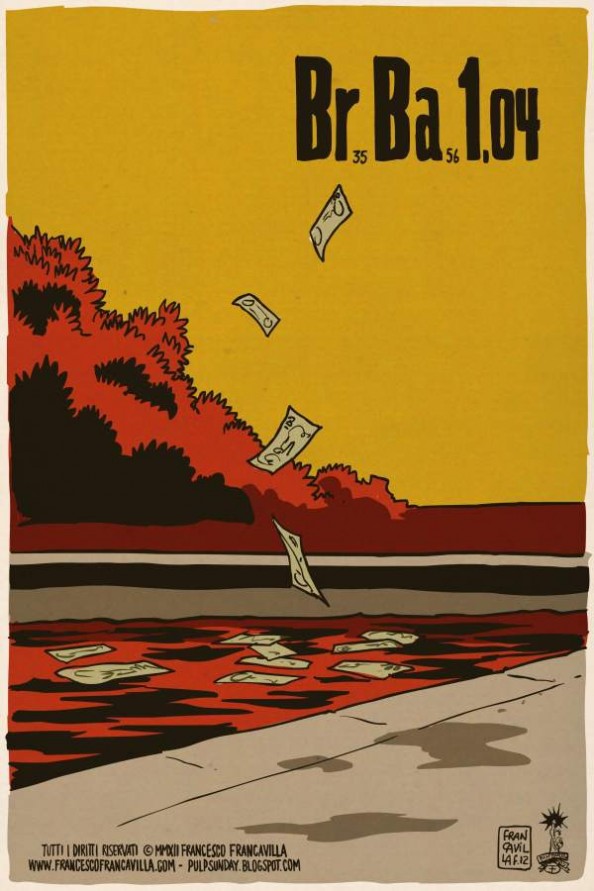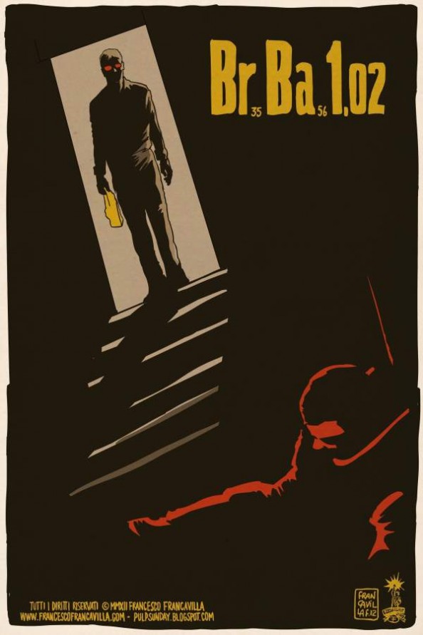 Ainda não tô em dia com Breaking Bad, mas cada novo episódio que assisto creio ainda mais estar vendo o surgimento de um clássico do mesmo naipe de Mad Men e Sopranos. As ilustrações são do desenhista italiano Francesco Francavilla.