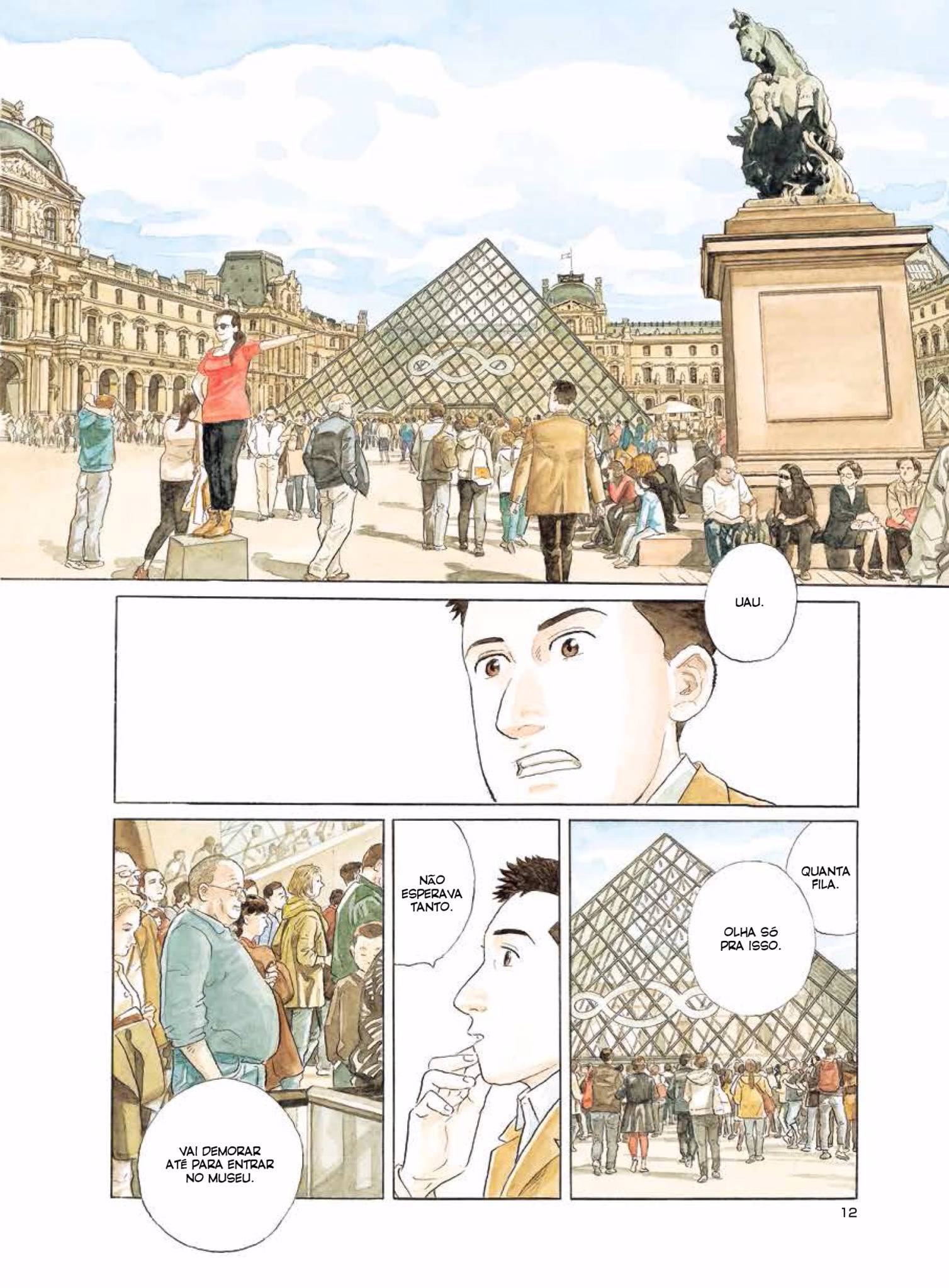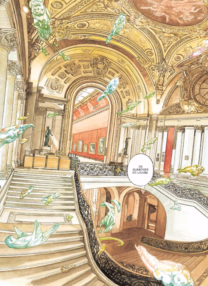 Tô bastante curioso por esse próximo lançamento da editora Pipoca & Nanquim, Guardiões do Louvre, do quadrinista japonês Jiro Taniguchi. Os responsáveis pelo selo adiantaram um prévia de 12 páginas do álbum aqui pro blog. A publicação terá 140 páginas e mostra um artista de férias pela Europa que se vê perdido, em meio a alucinações decorrentes de uma febre, nos corredores do Museu do Louvre, em Paris.