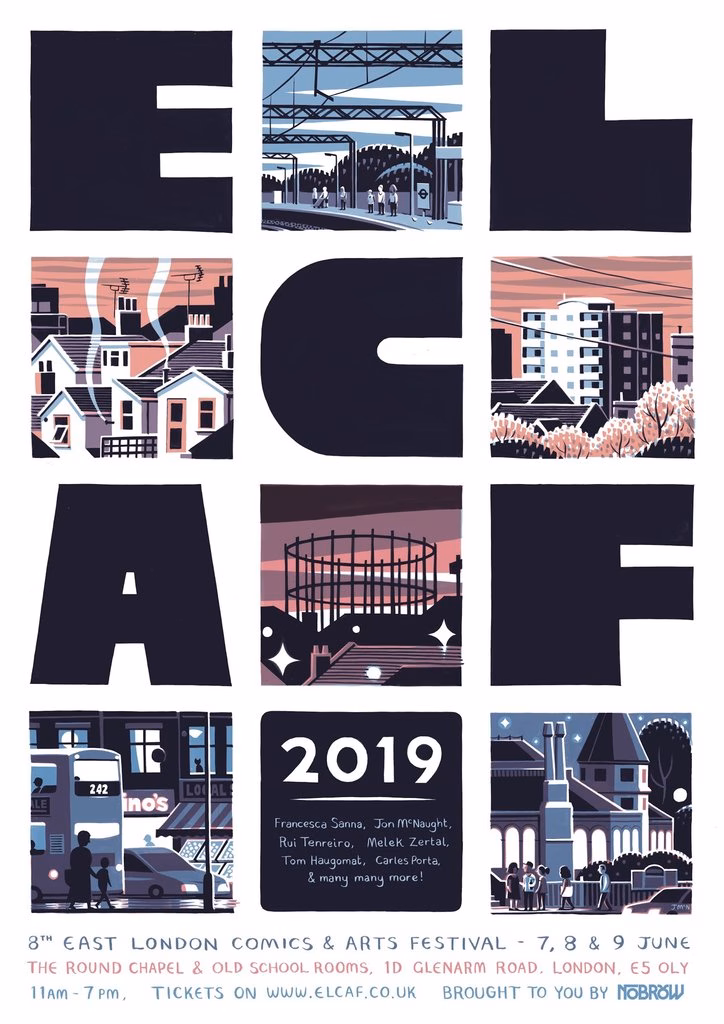 Semana de cartazes aqui no Vitralizado. Há alguns dias divulguei o trabalho do Junji Ito pro TCAF 2019 e hoje compartilho o cartaz da próxima edição do ELCAF (Festival de Quadrinhos e Arte do Leste de Londres). A arte é assinada pelo quadrinista britânico Jon McNaught. Nascido em Bristol e autor de alguns títulos da Nobrow, ele já ilustrou projetos para Penguin Books, New York Times, New Yorker e BBC.