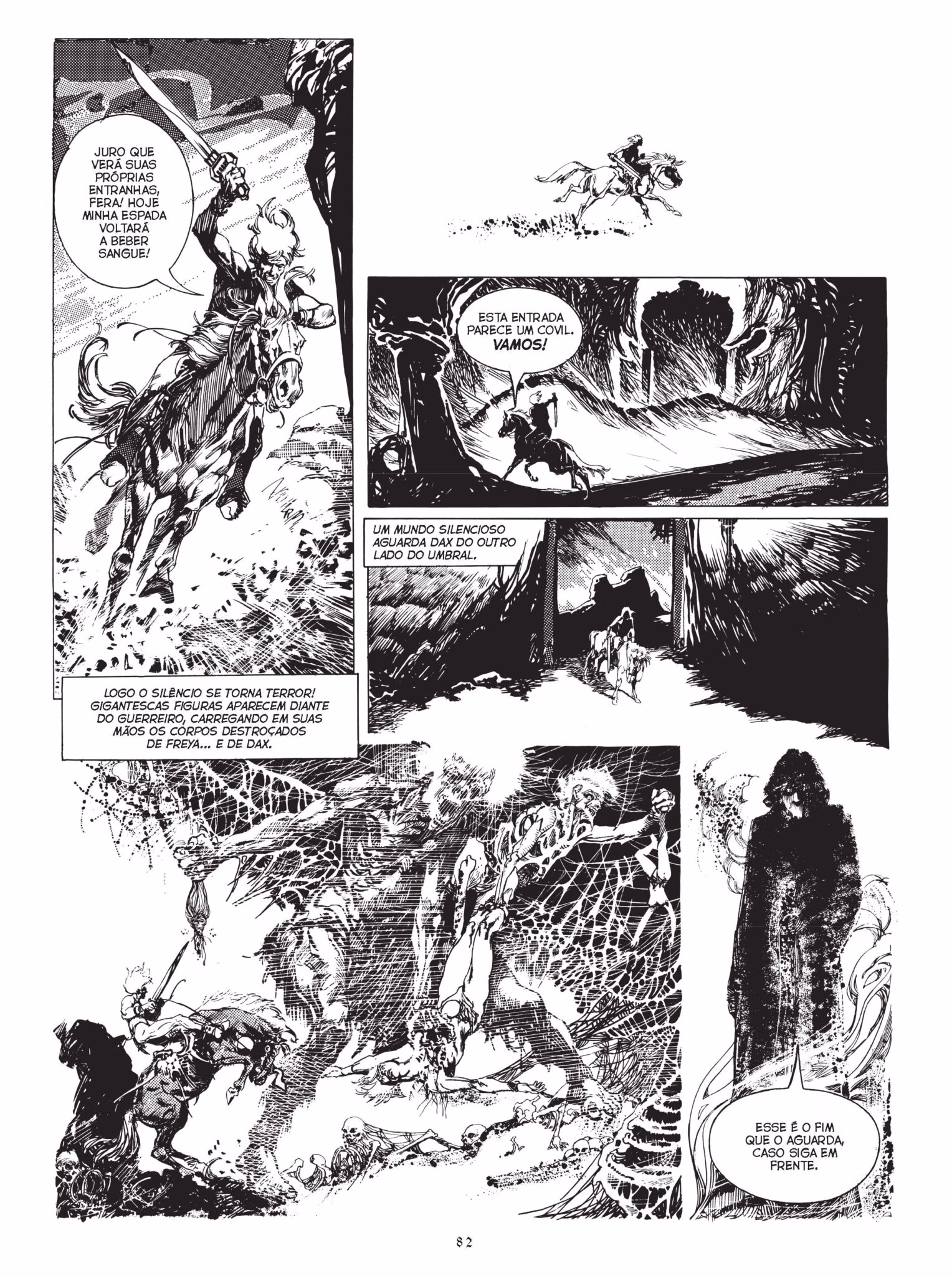 Interessando isso tudo, hein? O meu conhecimento de quadrinhos de fantasia do mesmo gênero está quase limitado a alguns clássicos do Conan, mas fiquei curioso com Espadas e Bruxas principalmente pela arte – adianto por aqui algumas páginas do livro. Outra curiosidade fica em relação a essa parceria com a Amazon e o quanto isso pode passar a ser uma via de regra para outras editoras e autores aqui no Brasil. Será que vira moda? Como será a recepção do público? Aguardo cenas dos próximos capítulos. Saca o preview que o pessoal dA (agora é uma editora, né?) Pipoca & Nanquim me mandou: