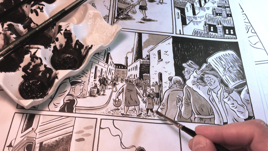 Deixo a seguir o link para o texto que escrevi sobre a obra de Nesti em dezembro de 2020, na época de seu lançamento, para a Sarjeta, minha coluna sobre histórias em quadrinhos no site do Instituto Itaú Cultural. Produzi o meu artigo a partir de uma conversa com o autor na qual ele me falou sobre o ponto de partida desse projeto, o desenvolvimento da obra, técnicas e métodos de trabalho e os paralelos entre o livro de George Orwell e o Brasil contemporâneo. Depois publiquei por aqui a íntegra dessa minha entrevista com o artista.