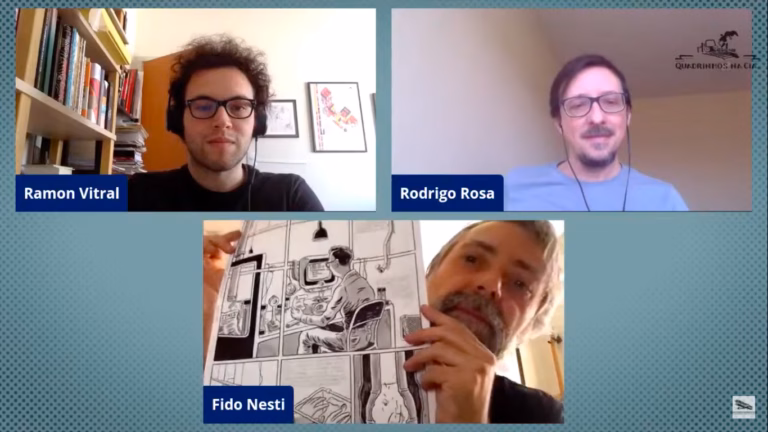 Deixo a seguir o link para o texto que escrevi sobre a obra de Nesti em dezembro de 2020, na época de seu lançamento, para a Sarjeta, minha coluna sobre histórias em quadrinhos no site do Instituto Itaú Cultural. Produzi o meu artigo a partir de uma conversa com o autor na qual ele me falou sobre o ponto de partida desse projeto, o desenvolvimento da obra, técnicas e métodos de trabalho e os paralelos entre o livro de George Orwell e o Brasil contemporâneo. Depois publiquei por aqui a íntegra dessa minha entrevista com o artista.