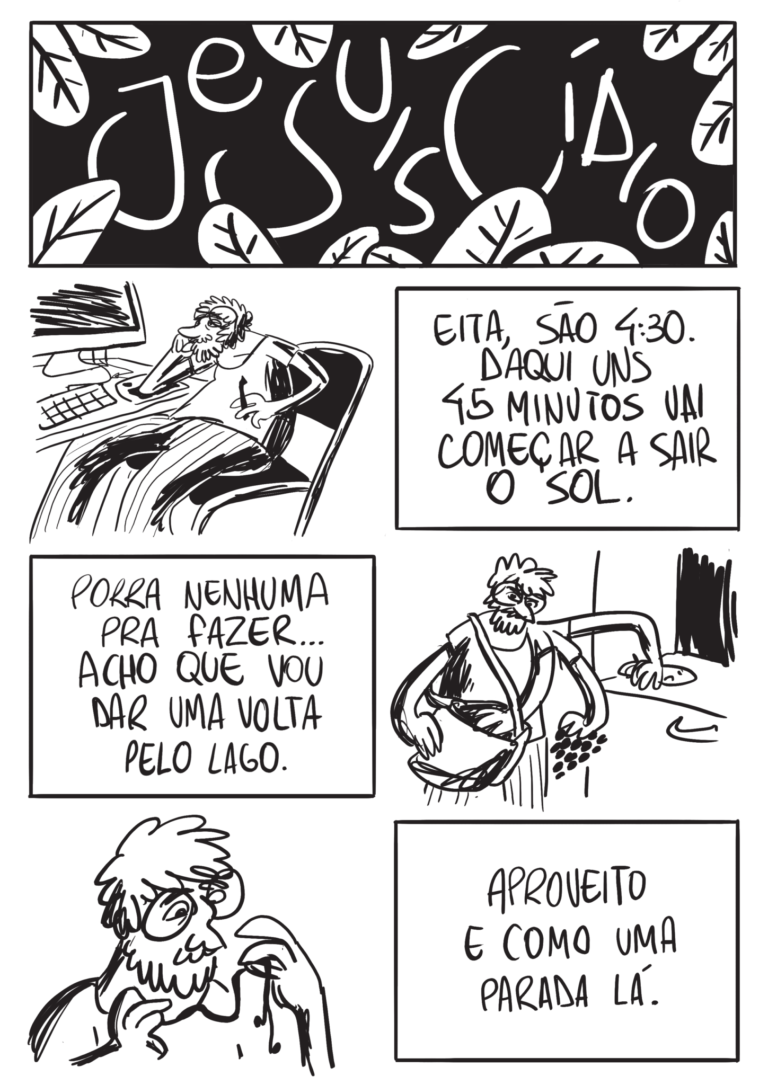 Publiquei na semana passada aqui no blog as duas primeiras páginas do projeto, junto com uma entrevista na qual o autor fala sobre suas influências e inspirações. Hoje reproduzo a segunda atualização da série, com as duas páginas seguintes.