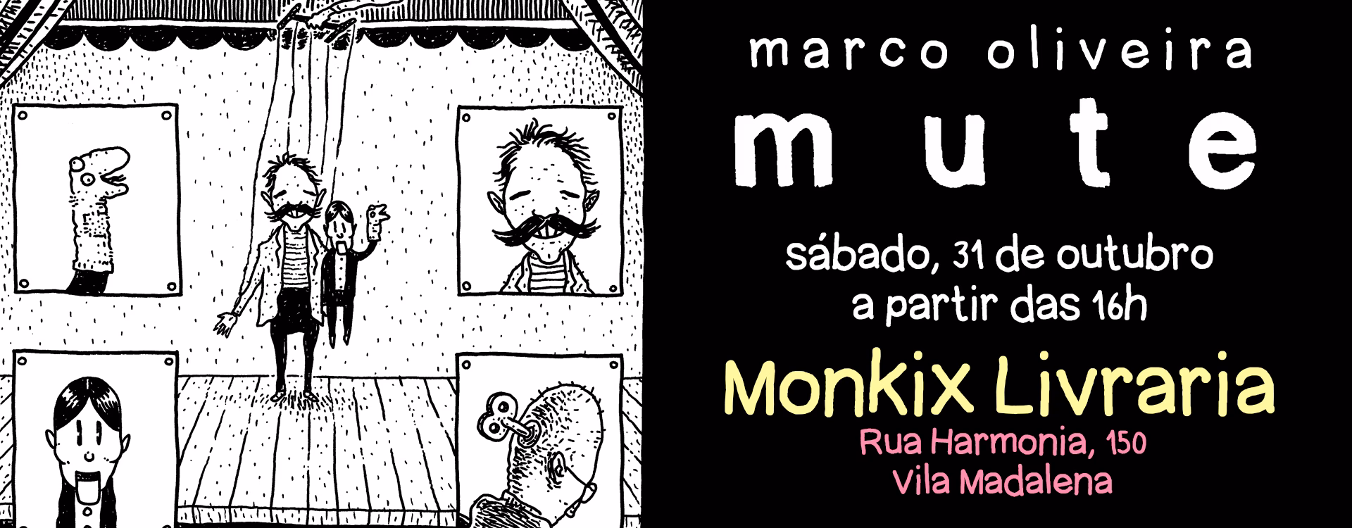 E ó, vale o toque: sábado rola em São Paulo o lançamento do Mute. A festa vai ser lá na Monkix, uma das lojas de quadrinhos mais legais da cidade, a partir das 16h. Lá na página do evento no Facebook o Marco Oliveira tá prometendo uma gravura serigrafada com uma HQ do livro para cada Mute comprado. Eu vou. Vamos?