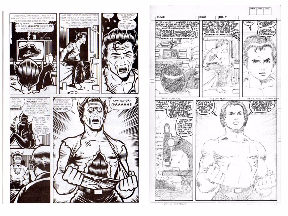 Cara, essa história é demais. Em 1983 a Marvel publicou uma revista chamada Marvel Try-Out Book. A publicação tinha um formato maior do que os quadrinhos tradicionais da editora e propunha um desafio a aspirantes a quadrinistas: além de explicar as diferentes funções de cada um dos artistas envolvidos na produção de um gibi de super-herói, pedia que que os artistas fizessem a arte-final e as letras de dez páginas de John Romita Jr, depois refizessem as páginas com seus estilos e mandassem para a editora. Até aí tudo bem. Os vencedores foram anunciados em 1986 – ninguém muito digno de nota, diga-se de passagem. E a Marvel repetiu a experiência em 1996.