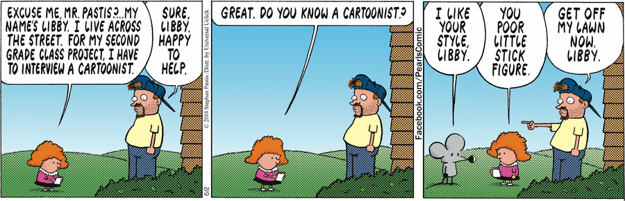 Watterson disse que conhecia o trabalho de Pastis, que costuma fazer piada do fato de suas habilidades como desenhistas não serem lá essas coisas. A ideia de Watterson era que Pastis batesse a cabeça e começasse a desenhar bem – e esses seriam os quadros ilustrados pelo convidado. O dono da tira propôs outra ideia: ele criaria uma nova personagem, uma criança, que soubesse desenhar melhor que ele. O traço dela seria de autoria de Watterson. O nome da garotinha chama Libby, que depois foi abreviado pra Lib – Bil ao contrário, como lembra Pastis em seu blog. A origem da personagem: