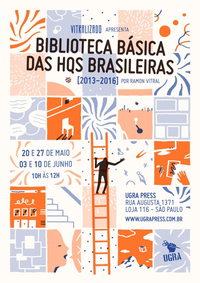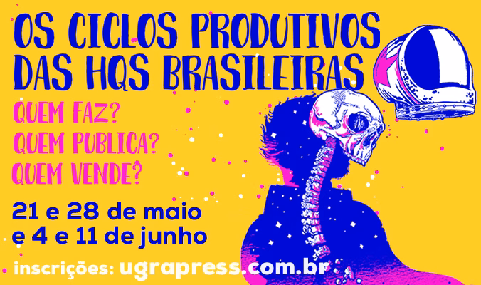 Ei, leitores do Vitralizado, cês tão afim de conversar ao vivo sobre quadrinhos comigo e mais um monte de gente massa do mercado brasileiro de HQs? Vou coordenar o curso Os Ciclos Produtivos das HQs Brasileiras lá na loja da Ugra. Serão quatro aulas, sempre de 10h às 12h, nos dois últimos sábados maio (21 e 28/5) e nos dois primeiros de junho (4 e 11/6). Convidei alguns nomes de peso pra esses encontros: Luciana Foraciepe (Maria Nanquim), Wagner Willian (Bulldogma e Lobisomem Sem Barba), Janaína de Luna Larsen (Editora Mino), Zé Rodolfo (Gato Preto), Douglas Utescher (Ugra Press) e Pedro Cobiaco (Aventuras na Ilha do Tesouro e Harmatã). As quatro aulas saem por R$60 e você se inscreve lá no site da Ugra.