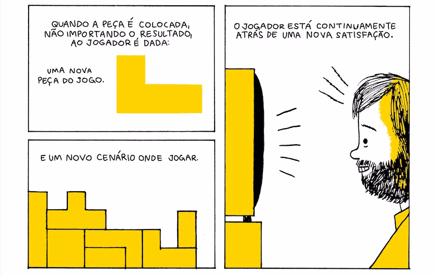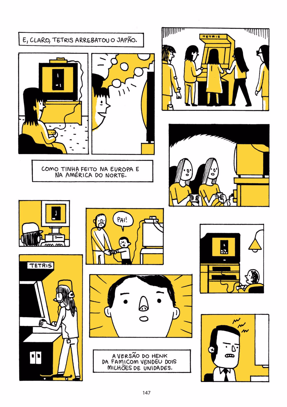 Quadro de Tetris, HQ de Box Brown publicada no Brasil pela editora Mino
