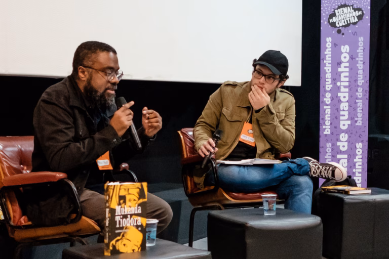 Elas falaram de suas expectativas para o evento, da definição do tema e dos convidados, da escolha da letrista Lilian Mitsunaga como homenageada, da primeira Bienal pós-Bolsonaro e pós-pandemia e da importância de debates e discussões sobre quadrinhos para o mercado nacional de HQs.