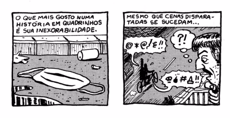 Enfim, o meu ponto é que, para mim, ler um quadrinho de Diego Gerlach é meio que comer um carbonara tendo como trilha sonora uma unha se arrastando por um quadro de escola. É diversão no seu melhor acompanhada de um incômodo incessante.