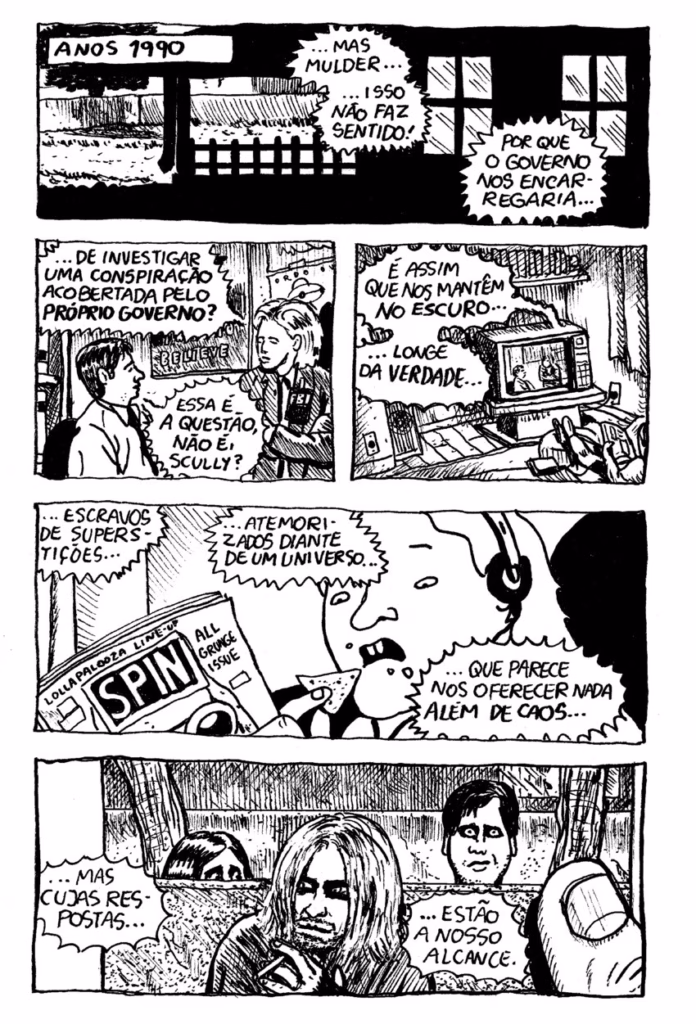 E acho que muito desse desconforto dialoga com a bad vibes do Brasil do início dos anos 1990, com a coisa deprê do Nirvana e as tensões conspiratórias de Arquivo X. Tem todo um combo aí muito propício para conspiracionistas, negacionistas, incels e tudo meio de errado que pode existir no mundo, né?