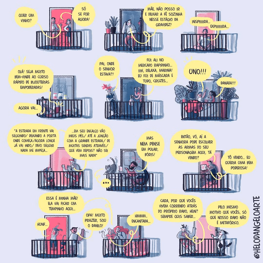 Conversei com a quadrinista Helô D’Angelo sobre Isolamento, série que acompanha a rotina dos moradores de um prédio desde o início da pandemia do novo coroanvírus. A obra é publicada no Instagram e no Twitter da autora desde os primeiros meses de 2020 e está atualmente em campanha de financiamento coletivo para lançamento de sua versão impressa. Transformei essa entrevista com a artista no tema da edição de abril da Sarjeta, minha coluna mensal sobre histórias em quadrinhos no site do Instituto Itaú Cultural. Você lê meu texto clicando aqui.