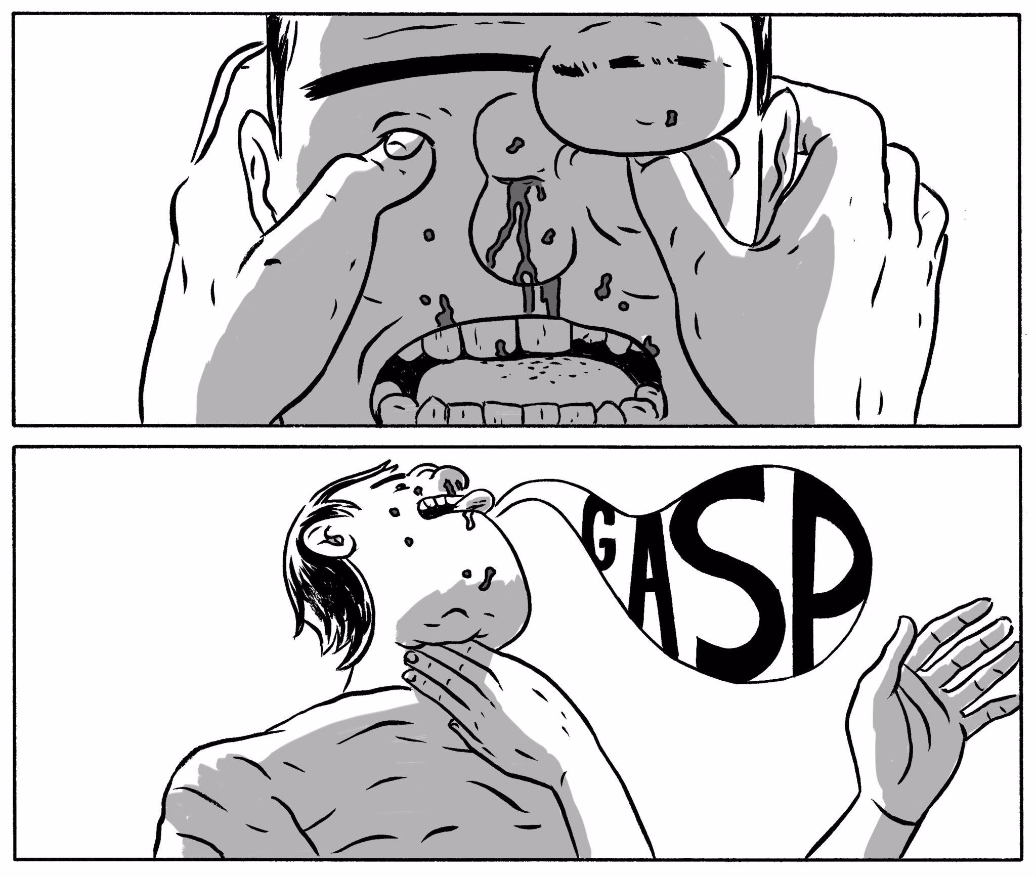 Acho que violência gráfica é uma das coisas mais divertidas que existem e o único limite é realmente a consciência do autor. Mas não acho que meus quadrinhos sejam particularmente violentos, pelo contrário, acho que eles são até bem contidos, com uma violência estilizada. Sem falar que meu traço é bem cartunesco. Isso me lembra o Bill Gaines depondo na comissão do Senado e falando que o bom gosto era o que limitava a publicação dos quadrinhos da EC Comics. Daí o Kefauver mostra pra ele uma capa da Crime SuspenStories, feita pelo Johnny Craig (aquela onde marido segura a cabeça decepada da mulher) e pergunta se aquilo é de bom gosto. O Gaines responde que sim, pra uma revista de terror. É mais ou menos isso, sabe? Acho que pro tipo de história que eu faço não há um excesso de violência. Eles só parecem violentos em comparação aos outros quadrinhos brasileiros que, em geral, são muito fofos.