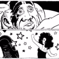 Eu sei que nos processos de um quadrinho jornalístico, por exemplo, os jornalistas têm um apego muito maior aos fatos, com o que aconteceu e tal. Eu fiquei refletindo sobre esses processos e… Que bom que eu não sou jornalista (risos). Porque eu tive um desapego maior em relação aos fatos e tal, em relação ao que realmente saiu da boca de algumas pessoas ou não. É claro, eu pedi autorização das pessoas que são nomeadas e todas elas viram antes as páginas em que aparecem, só que certas coisas eu mudei porque achei que servia melhor à história ou porque simplesmente era impossível de se verificar, porque aconteceu no passado e tal.