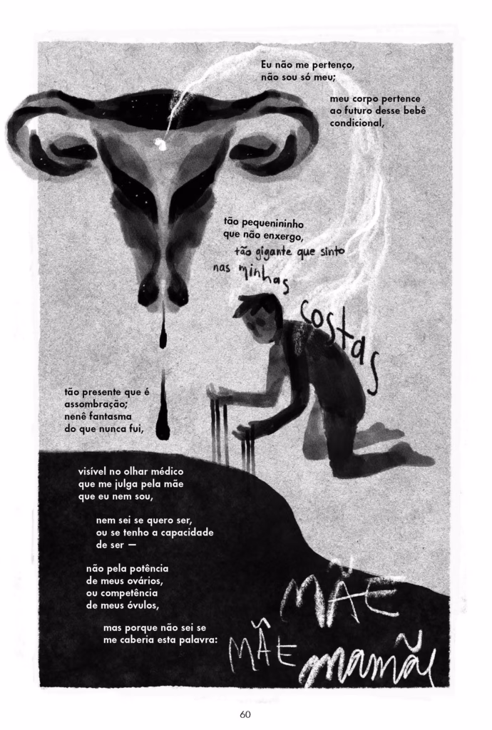 Acho que é o trabalho mais pessoal, mas, ao mesmo tempo, de forma bastante consciente, né? Quando você coloca, “isso aqui é uma autobiografia”, as pessoas atentam o olhar para essa afirmação. Elas já tomam como verdade tudo que está no livro. Então acho que a gente vai para esse lugar da exposição. Tipo, eu tenho outros trabalhos com elementos autobiográficos, mas acho que feitos de uma forma um pouco mais mascarada. No caso desse livro, acho que eu estava com muita raiva, eu sabia que ia acabar me colocando de uma forma um pouco mais assertiva. Sabendo disso tudo, acho que tive, de forma muito consciente, mecanismos para me preservar um pouco.