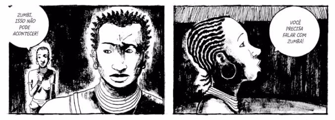 Em geral, elaboro um roteiro para começar a desenvolver a HQ. Contudo, a narrativa vai se desenvolvendo e procuro aproveitar as ideias que surgem no caminho. Muita coisa nova surge nesse processo. Em Angola Janga, aliás, muitos dos personagens foram surgindo de modo muito orgânico.
