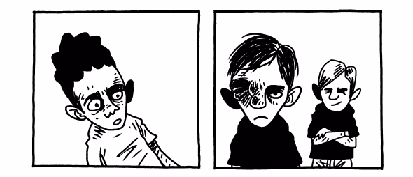 Bati um papo por email com o Marco Oliveira. Ele me falou sobre suas aspirações com a HQ, tratou das origens do projeto e comentou sua primeira experiência como roteirista e ilustrador em um quadrinho longo. Abri a conversa falando das páginas iniciais do livro, uma cena tensa com duas crianças sendo agredidas e amedrontadas por um indivíduo desequilibrado, experiência que o autor diz ter vivido durante a infância. Conversa muito boa – assim como a que tivemos na época do lançamento de Mute. Ó: