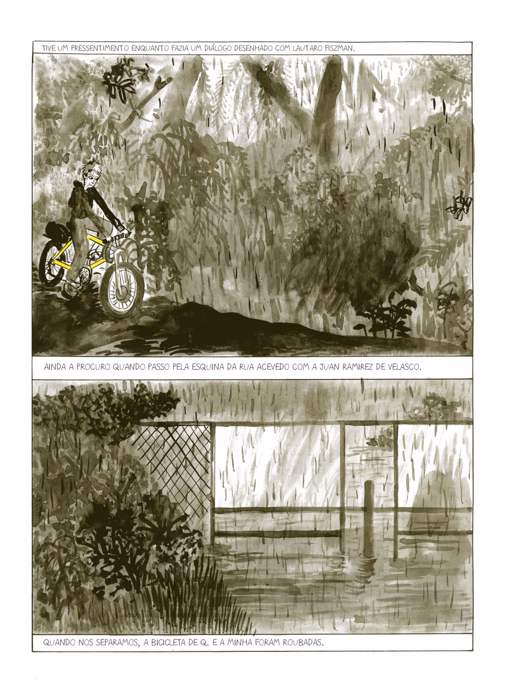 Na minha cabeça existem alguns livros que eu tenho em mente e que quero fazer nesta vida, depois eles acabam virando outra coisa, mas isso não importa. As bicicletas sempre foram minhas grandes companheiras e principalmente nestes últimos anos da minha vida, por isso era algo que insistia em ser desenhado e escrito. Um dia eu contei à Maitena que estava começando a desenhar uma história em quadrinhos sobre todas as bicicletas que eu havia tido e ela me emprestou um livro da Cecilia Pavón que tinha um conto lindo chamado Todas as bolsas que eu tive e me animou ainda mais a ideia de continuar. Justo naquela época vi que ela estava dando uma oficina de poesia, então entrei em contato e estive na sua oficina durante todo 2020.
