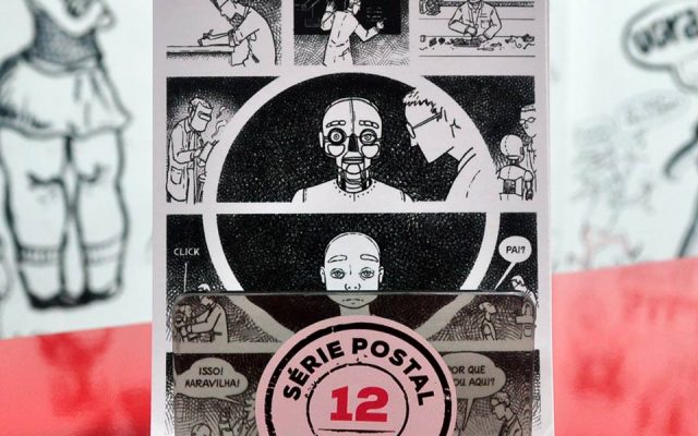 “Eu gosto desse formato, gosto de usar uma página como uma coisa fechada. Acho que me dou melhor com espaços menores do que com uma sequência de páginas. Pro caso do postal, eu passei muito tempo me perguntando o que eu ia fazer. Eu nunca tinha feito nada assim, que fosse ser distribuído nessa forma ou mesmo no formato de postal. Isso me empacou um pouco mais no começo”