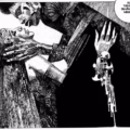Uma página de A Máscara da Morte Rubra e Outros Contos de Poe, trabalho do italiano Dino Battaglia que está em campanha de financiamento coletivo no Catarse para publicação pela editora Figura