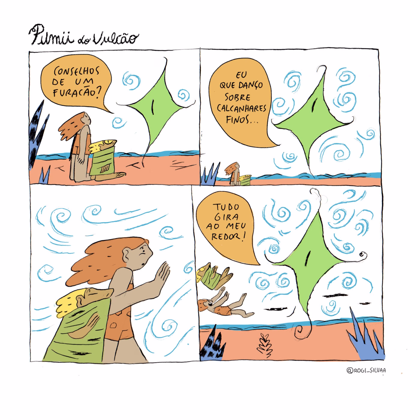 Pumii é poesia em quadrinhos protagonizada, ocasionalmente, pelo personagem-título e sua amiga Merapi, habitantes de um vulcão. A série é centrada, principalmente, nas interações da dupla com outras criaturas da fauna e da flora da ilha em que vivem. Torço para que um dia ganhe versão impressa.