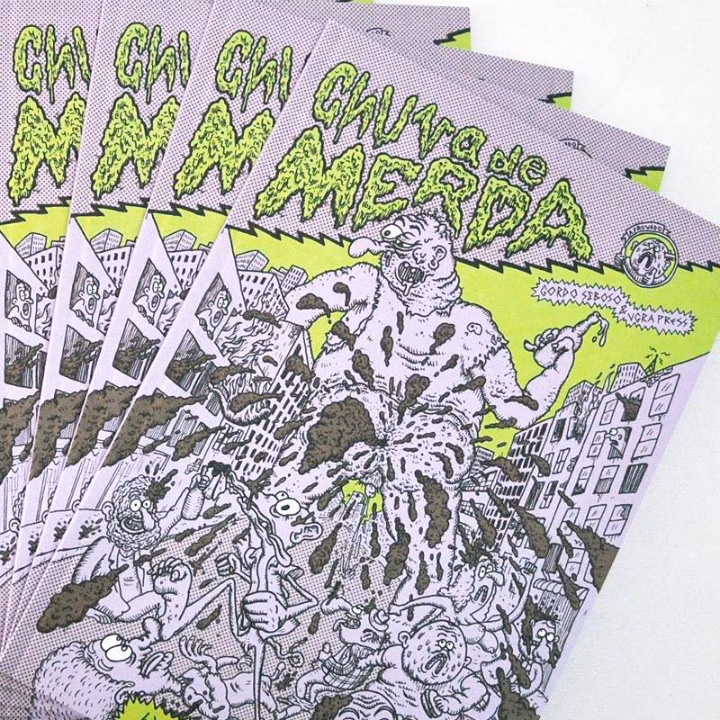 Hoje em dia você vê autor jovem, moleque, que faz um quadrinho e transforma aquilo num álbum, bem impresso, com uma produção gráfica bacana. Lógico: se o cara fez mil cópias com um acabamento legal, ele tem um compromisso de ter o retorno daquilo, pelo menos conseguir empatar o investimento. Pra isso, ele precisa de um suporte maior de divulgação. E a gente não tem isso ainda pros quadrinhos. Você tem trocentos blogs que vão falar sobre qualquer coisa que saia sobre a Panini. “Mudou uma listra do uniforme do herói sei lá o que”, os caras ficam, “Ai, meu deus, e agora? Saiu uma listra nova!”. E aí saem uns quadrinhos sensacionais e ninguém fala. Pra você ter uma ideia, a gente lançou o Chuva de Merda. A gente fez um pacote promocional e enviamos pra 12 sites, revistas e blogs. Só tivemos respostas de você e do Contraversão. O resto, ignorou sumariamente. A gente mandou email perguntando se tinha recebido, “ah, recebi”. Sabe? Não saiu nenhuma notícia. Eu não tô pedindo pra falar bem, mas eu gostaria que as pessoas soubessem que existe. Mesmo que seja pra criticar – e lógico que quando você lança um quadrinho que chama Chuva de Merda, você está dando motivos para as pessoas criticarem (risos) Por mais que eu goste, entendo que há razões para que nem todo mundo goste. Mas não é isso, só gostaria que as pessoas soubessem que existe. Se ninguém fala, ninguém sabe que existe.