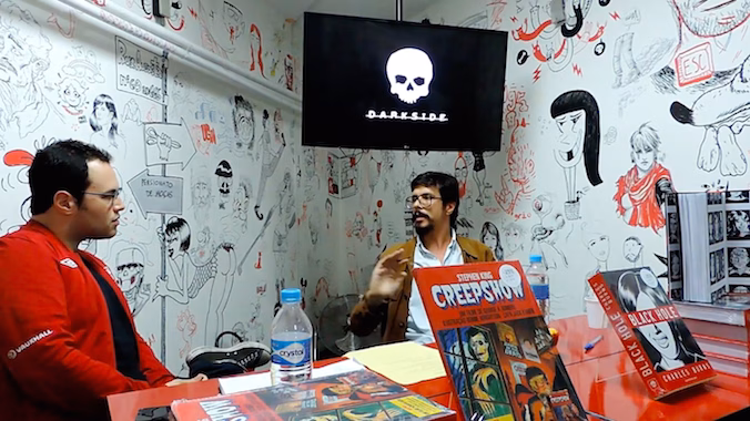 Eu conversei com o editor da DarkSide Books, Bruno Dorigatti, lá na loja da Ugra no dia 21 de outubro. O Carlos Neto filmou o encontro e compartilhou lá no canal dele no YouTube, o Papo Zine. A conversa tratou principalmente sobre os dois quadrinhos mais recentes da editora, o clássico Black Hole, do Charles Burns, e o álbum Creepshow, parceria do Stephen King com o Bernie Wrightson e o George Romero. São dois dos principais lançamentos do selo em 2017, sendo essa edição do trabalho do Charles Burns obrigatória pra qualquer leitor de quadrinho. Dá o play: