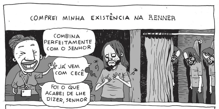 Na verdade, o nome não é Vida de Plástico, é Vida de PRástico, com erre mesmo. É o nome de uma das histórias que está na coletânea. Ela saiu originalmente na revista XULA e acho que traduz não apenas a minha condição como ser humano, mas também o meu trabalho como quadrinista: uma relação de consumo malsucedida, onde você tem sempre menos do que espera, como a situação em que você compra o sanduíche da foto, mas recebe aquele melancólico pedaço de isopor do Mc Donald’s. O nome é, também, uma referência ao “Vida de Plástico”, um seriado de animação que passava, na MTV lá pelos idos de 2001 ou 2002 e que usava o Ken e a Barbie numas animações stop motion meio escrotas. Acho que era do Felipe Xavier do Sobrinhos do Ataíde, se não me engano.