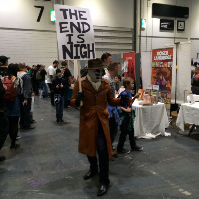 Londres abriga ao longo de cada ano várias feiras de quadrinhos. A convenção que abre o calendário é a London Super Comic Convention, realizada sábado (15/3) e domingo (16/3) no Excel Centre, um espaço de eventos localizado na zona leste da cidade. Fica próximo ao Parque Olímpico e nas Olimpíadas de 2012 abrigou várias competições, como os torneios de boxe, judô e ping-pong. Estive na convenção durante os dois dias. O foco da London Super Comic Convention é em quadrinhos, sem espaço para filmes e séries como outros eventos do mesmo tipo. Havia muitas pessoas fantasiadas e alguns estandes de brinquedos, mas a maior parte do local estava ocupado por tendas e mesas de lojas especializadas em quadrinhos, de autores e editoras. Entre os nomes mais famosos presentes na edição de 2014 estavam artistas ingleses como Dave Gibbons (Watchmen) e David Lloyd (V de Vingança), vários americanos e outros tanto roteiristas conhecidos. A lista completa de convidados está aqui.