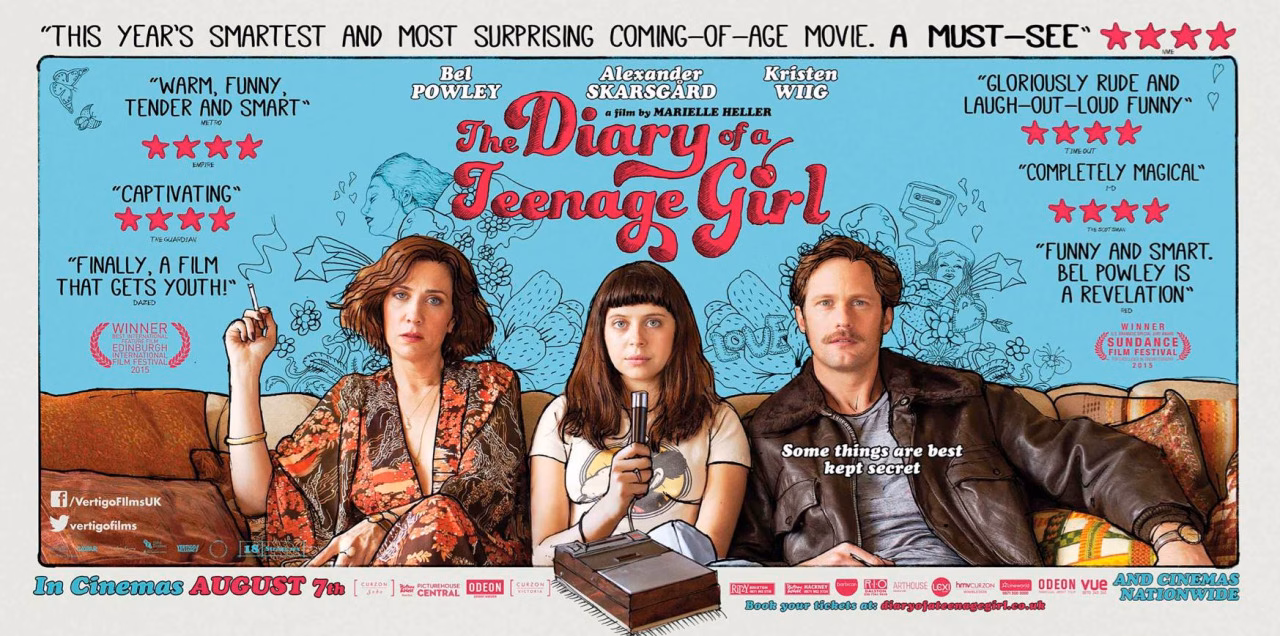 Alguém aí já viu/leu The Diary of a Teenage Girl? Já tinha sido fisgado pelo material de divulgação matador do filme, depois vieram os trailers, aí descobri que era baseado numa HQ e agora li uma resenha bem massa da Little White Lies sobre a produção. Tava mexendo no Imdb e parece que o filme nem tem data pra chegar nos cinemas daqui, mó deprê. Alguém aí já leu o gibi? Vi algumas artes e fiquei bem interessado também, a autora é a Phoebe Gloeckner. Enfim, aceito opiniões sobre o filme e o gibi. Alguém aí tem algo a dizer?