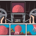 Aí que agora esbarrei com uma série de ilustrações e quadrinhos produzidos por ele como peças publicitárias para uma linha de lâminas refrescantes que dissolvem na boca da marca de balas Altoids.