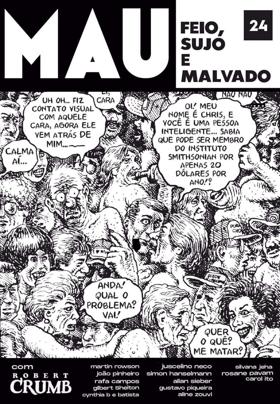 “A minha ideia inicial era fazer um zine. O que acabou acontecendo é que eu falei com umas pessoas e todo mundo disse que queria participar. O Crumb falou: ‘pode pegar o que você quiser’. Aí o Gilbert Shelton mandou uma história nova do gato dos Freak Brothers, o Fat Freddy. Aí o Martin Rowson fez uma especial, linda. Aí ficou melhor que o meu plano original. E ainda tem Allan Sieber, Carol Ito, Aline Zouvi…. Mas não teve muito planejamento, não”.