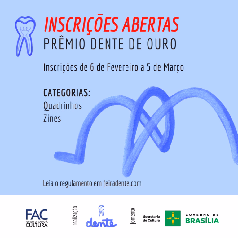 Ó que massa: o pessoal da Feira Dente de Brasília está organizando um prêmio voltado para publicações impressas lançadas no Brasil entre 2014 e 2016. Eles dividiram o Prêmio Dente de Ouro em três categorias: quadrinhos, zines e publicação de arte, foto, design, conceitual e experimental. Além de contar com um júri de artistas com trabalhos muito consistentes, eles vão premiar os vencedores com dinheiro, algo raro em premiações do tipo aqui no Brasil. Ei, você, quadrinista, vale muito uma lida nas regras do prêmio, hein? Inscrições abertas até o dia 18 de março.